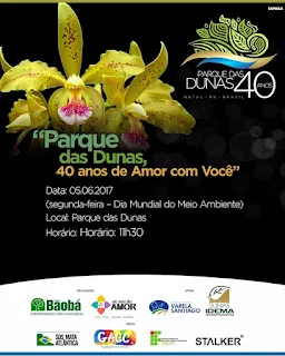 A campanha “Parque das Dunas, 40 anos de Amor com Você” é uma iniciativa da ONG Baobá e do Movimento Eu Sou do Amor, que tem o apoio do Parque das Dunas, do IDEMA, da Fundação SOS Mata Atlântica, da loja Stalker, do IFRN Campus Natal Central, do hospital Varela Santiago e do Grupo de Apoio de Criança com Câncer – GACC.
